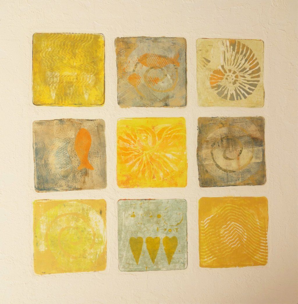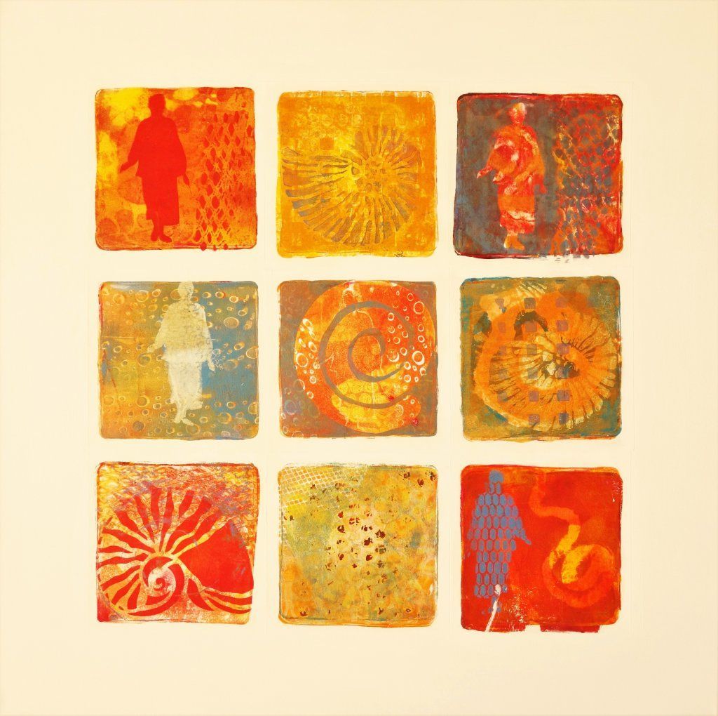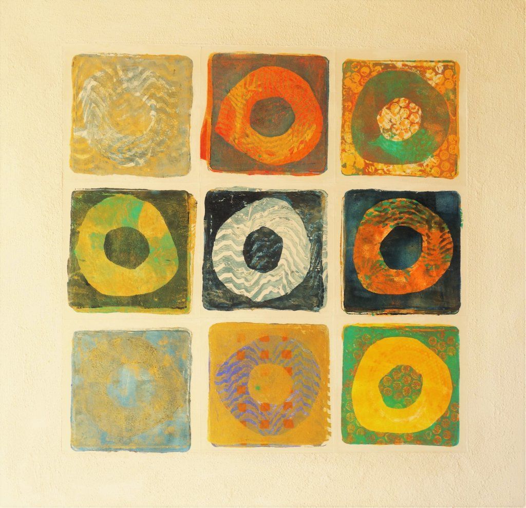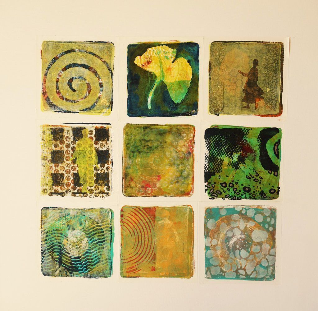 9 x Gelatinedrucke je 15 x 15 auf Leinwand 60 x 60